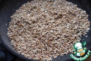 Растопить сливочное масло на небольшом огне. Добавить овсяные хлопья и обжаривать до золотистого цвета и орехового вкуса. Дать немного остыть. (Если обжаривать на сухой сковороде, конфеты будут немного суховатыми.) По желанию хлопья можно измельчить.