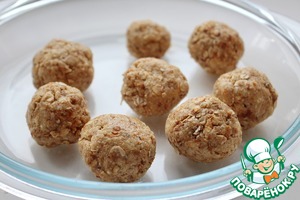 Смешать 2 ст. л. (с горкой) арахисового масла с медом и овсяными хлопьями. Скатать шарики. Если шарики плохо лепятся, добавьте немного меда. Поставить в холодильник минимум на 1 час.