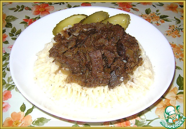 Получилась печёнка очень вкусная, сочная, с необычным соусом. Манка в этом блюде совершенно неузнаваема, а как же подходит!