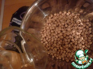 Нут предварительно тоже нужно замочить (лучше даже на ночь) а потом сварить до готовности. Я нут отвариваю всегда всю пачку, откладываю сколько мне нужно для блюда, остальное замораживаю и вытаскиваю, когда мне он необходим. В этот раз я так и поступила. Достала несколько штук из морозилки. (На фото у меня когда я замачивала его, чтобы отварить)))