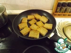 Обжарить каждый ломтик с двух сторон с небольшим количеством масла на среднем огне. Не зажаривайте, иначе будут жесткие.