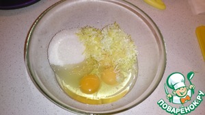Яйца, воду, сахар и цедру перемешать, поставить на водяную баню и хорошо взбить.