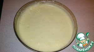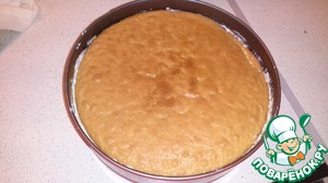 Кладем один корж в форму, сверху начинку и второй корж. Отправляем в холодильник часа на два.