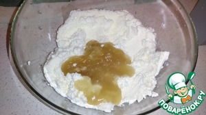 Вводим смесь в хорошо потертый творог и опять хорошо перемешиваем.