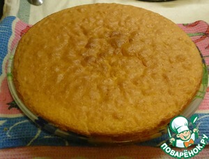 Вынимаем наш бисквит, даем ему остыть и разрезаем его пополам.