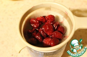 Вишню положить в ситечко, чтобы стекла жидкость.