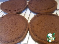 Извлечь бисквит через 5 минут после извлечения из духовки, дать остыть и разрезать на 4 тонких слоя. |