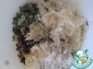 К картофелю и рису добавляем соль, перец, капусту и пассерованный лук.