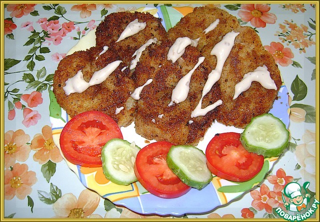 Из получившегося фарша формируем плоские котлетки (как оладьи) для удобства, так как текстура получается очень нежная. Обваливаем в сухарях.
