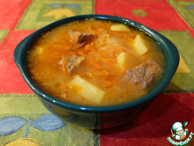 Товарищи дорогие, очень прошу вас не морщить сразу носики и не хмурить бровки, что это «стопятьсотый рецепт щей», выслушайте меня, пожалуйста, сначала, а потом уже «кройте». Собралась я готовить очередной раз щи и решила посмотреть, что есть на «Поварёнке», какие варианты. На запрос «Щи кислые» вышло 10 рецептов, по ингредиентам 58. Я просмотрела все. Прекрасные варианты и с пшеном и с грибами и с рыбой. Похожих на мой 5-6 вариантов, но где то одного нет, где то другого…Я училась готовить эти щи по книге «Краткая энциклопедия домашнего хозяйства»1959г. Когда вышла замуж, в далёком 1992. Готовлю их только так много лет и очень надеюсь, что мой вариант щей не помешает жить тем, кто делает их как то по своему и буду безмерно рада, если он пригодится начинающим кулинарам и останется с ними на долгие годы. Одно я могу обещать точно, что эти щи наваристые, сытные и очень вкусные. Спасибо за внимание.