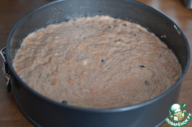 Добавить в 2 захода в тесто. Аккуратно перемешивая лопаточкой. -