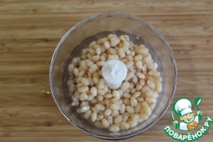 Замочить фасоль на 12 часов. Слить воду, налить 300 мл воды и варить до готовности, выложить в дуршлаг