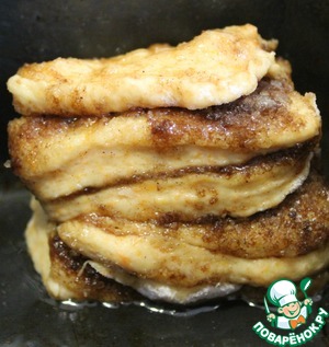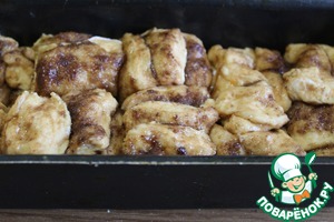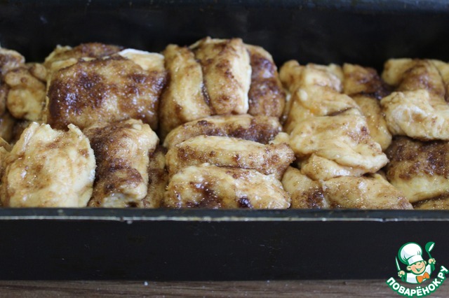 Смазать растопленным маслом и посыпать сахаром с корицей, прижать начинку -