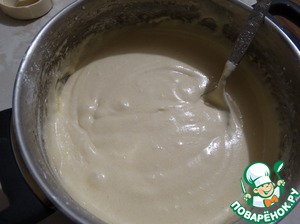 Яйца взбиваем с сахарной пудрой до увеличения объема в три раза. Частями всыпаем рисовую муку, добавляем смалец, ванилин, тщательно перемешиваем. Затем добавляем кукурузную муку, ее может пойти немного больше или меньше, в зависимости от размера яиц.