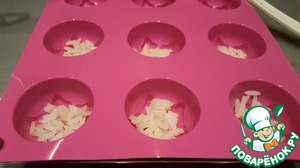 Насыпать небольшое количество отварного риса в формочки для конфеток.