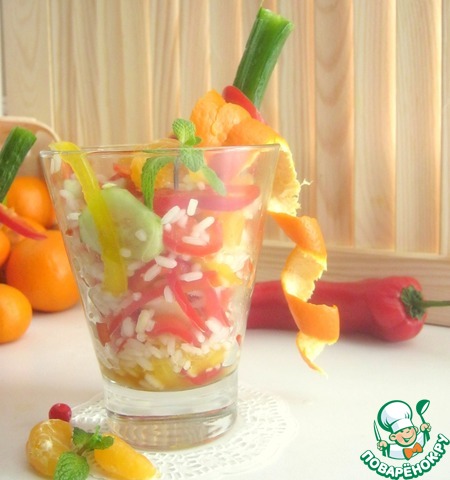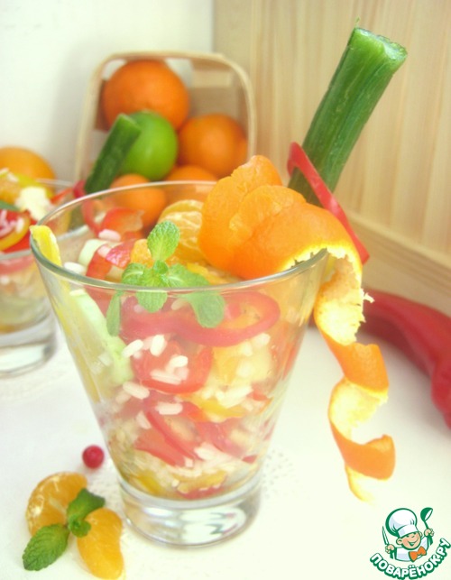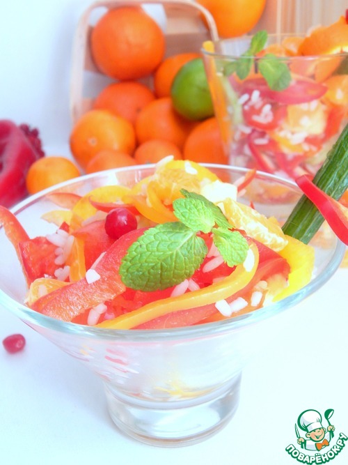Салат с рисом принято делать с обработанными овощами, но я предлогаю приготовить его со свежими, что особенно хорошо зимой, кроме того отварить рис я предлогаю вам с добавлением листиков мяты-это добавит салату аромат и нежный, тонкий вкус. Заходим-угощаемся!