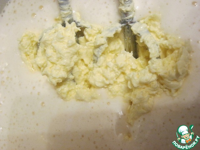 Добавить пюре в яично-сливочную массу и хорошо взбить