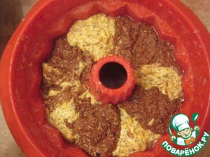 В силиконовую форму, смазанную маслом выложила слой светлой смеси