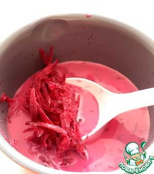 Свекла окрасит молоко в розовый цвет. Процедите смесь через сито