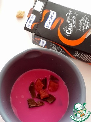 В остальное молоко добавьте шоколад и сахар по вкусу (в моем случае коричневый сахар Мистраль), нагрейте почти до кипения, но не кипятите -