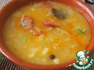 так вот был бульон из копченых ребрышек (около 1 литра). Варила по рецепту + добавила 2 литра воды. Из дополнений - паприка была копченая и от этого вкус только выиграл!
