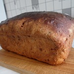 Убирайте в духовку. Я делаю так: сперва при температуре 250 градусов на 10 мин и дальше убавляю температуру до 170-160 и выпекаю ещё 30 минут. Получилась в этот раз у меня вот такая бомба. Все таки, одноразовая форма не очень держит ту самую форму... Накройте полотенцем и дайте хлебу немного отдохнуть.