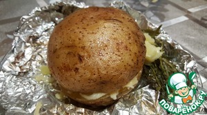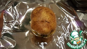 Соединяем половинки. Нарезаем фольгу. Кладём картофель на лист фольги и аккуратно заворачивам.