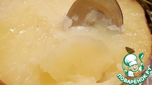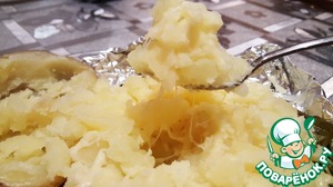 Убираем с картофеля веточки и взрыхляем наш картофель чайной ложкой или вилкой, как Вам удобнее.