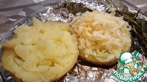 Кладём на половинку картофеля натёртый сыр.