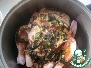 Хорошо натираем курицу и оставляем мариноваться минимум на 4 часа