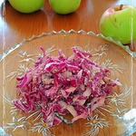 Яблоки я везде люблю и в салаты пихаю вовсю. Капусту тоже или овощечисткой-если немного или на терке, или в комбайн закидываю. Но все больше белокочанную, красная у нас китайская, горчит ...