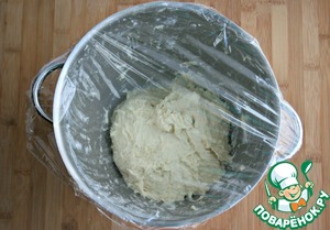Тесто должно быть мягкое. Накрыть пленкой, отставить для подъема на 30-40 минут