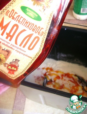 • Тесто я вымешиваю в хлебопечке. В ведерко налить кефир и воду, всыпать сахар и соль, добавить желтки, маскарпоне и "облепиховое» масло. Всыпать просеянную муку, добавить дрожжи. Далее я выставляю режим Обычный хлеб –по программе с выпечкой он идет на 3 с половиной часа. Я засекаю 2 часа и занимаюсь своими делами. Тесто вымесится и подойдет само.