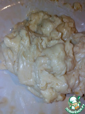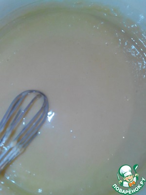 Добавить растопленное слив. масло, соду, гашенную уксусом, муку и молоко. Тщательно взбить венчиком.