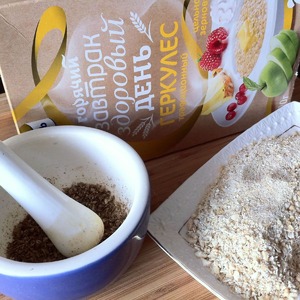 • Кумин и кориандр истолките в ступке. Арахис и Геркулес от Мистраль измельчите в блендере.