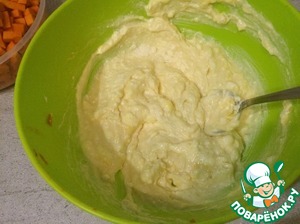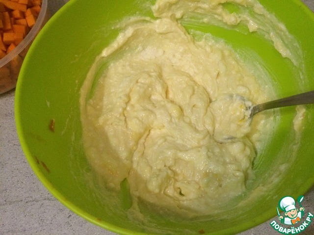 Теперь вываливаем приготовленную смесь творога с тыквой