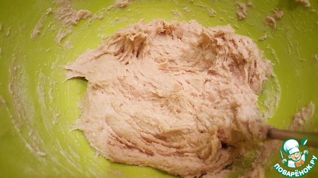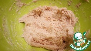 Смешать в миске размягчённое сливочное масло с 2 мя ст. л. сахара, добавить корицу. Перемешать. Добавить ряженку и яйцо. Перемешать. Добавить муку. Перемешать.