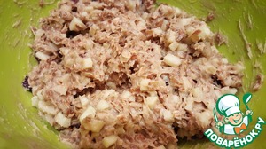 • Очистить зелёное яблоко от кожуры, удалить сердцевинку и нарезать на мелкие кубики. Включить духовку 180*.