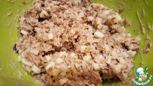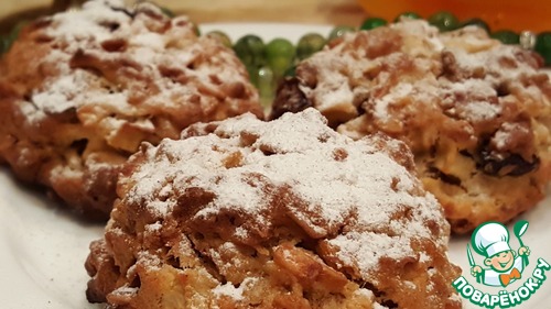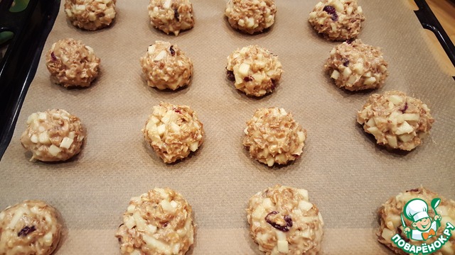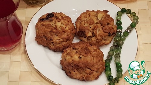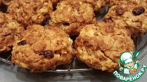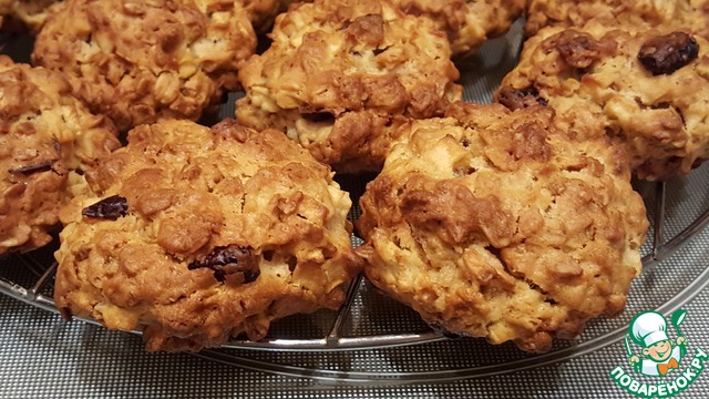 За основу я взяла рецепт обычного овсяного печенья, заменила сметану на ряженку, добавила яблоко и клюкву и карамелизировала хлопья... Угощайтесь!!!