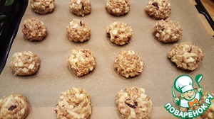 Мокрыми руками скатать шарики из теста размером с тефтельку и положить на застеленный бумагой для выпечки противень. У меня получилось 16 печенек. Выпекать около 15-20 минут. Ориентируйтесь на вашу духовку!!!