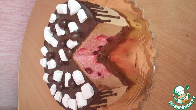 И ещё, вишневый мусс лучше пробивать блендером, миксер у меня не справлялся. Отсюда незначительное увеличение объема.