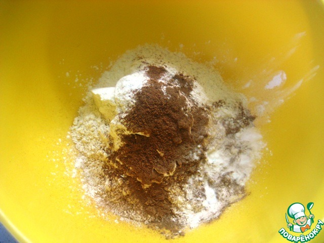 В миске смешать муку, соду, соль, корицу и мускатный орех.