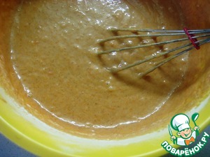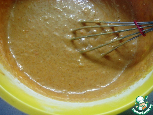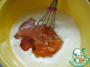 Добавить тыквенное пюре, растительное масло и апельсиновый сок.