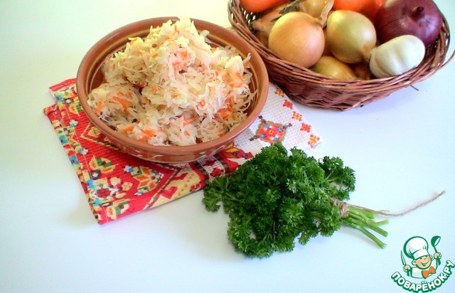 Квашеную капусту отжать немного от рассола если очень кислая промыть, отжать. Если капуста не супер кислая, то не промывать, немного отжать от сока