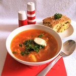 - Зелень ( букет гарнии:3 веточки петрушки, 3 веточки укропа, 1 веточка зелени сельдерея,( у меня стебель сельдерея) 1 шт. лаврового листа(всё это связать верёвочкой)).)