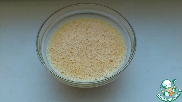 • Оставшиеся 2 яйца размешать вилкой. Можно чуть посолить, но необязательно.