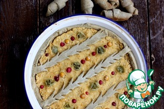 • Запечь в разогретой до 180 градусов духовке 30-40 минут. Тесто тонкое и хрустящее.