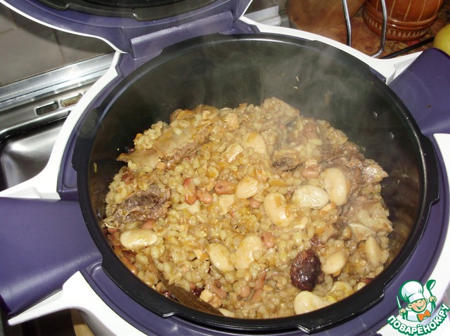 Осенью 2015 года мы с мужем отдыхали в Закарпатье и попробовали чудесное блюдо - човлент. Хочу поделиться с вами рецептом этого блюда, приготовленого в мультиварке.