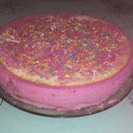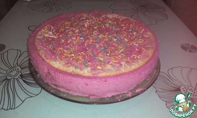 Сверху выкладываем второй корж. Даем в холодильник на 12 часов. Снять круг с торта, с помощью ножа. Вот такая красота получилась! |