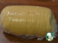 Взбить масло и сахар. Добавить яйца. Взбить. Добавить муку, молотый кокос и замесить тесто. Завернуть в пищевую пленку и оставить в холодильнике на 30 минут. |